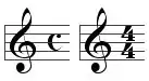 4, (в англійській термінології також «common time», дослівно — загальний час). Натомість розрізане по вертикальній лінії «