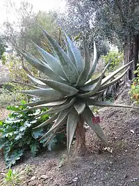 Багаторічний вічнозелений чагарник, що не гілкується заввишки 2-4 м з вершиною, прикрашеною розеткою потужних товстих листків. Листя ланцетовидні, соковиті, сріблясто-блакитні, 1-1,5 м завдовжки, 20-25 см завширшки. Краї й обидві сторони листка засаджені зубчиками червоного або коричневого забарвлення.