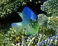 Риба до 9 см завдовжки з блідо-зеленим забарвленням. Зустрічається групами чи по-одному біля коралів. Харчується зоопланктоном.