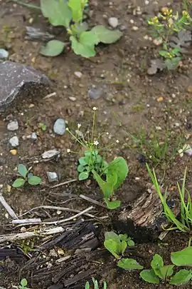 Однорічна трава з численними волокнистими коріннями. Листові розетки одиночні, 2–8 см в діаметрі. Листя базальне; черешок приблизно такий же або трохи довший, ніж листова пластина. Листові пластини від еліптичної до яйцювато-довгастої форми, 6–25 × 5–12 мм, безволосі або рідко залозисто запушені, верхівка від тупої до гострої. Квітконосні стеблини від 3 до багато, 2.5–15(20) см, безволосі або з розрідженими залозними волосками дистально. Зонтики багато-квіткові; приквітки лінійно-ланцетні, ≈ 2 мм. Квітоніжки нерівні, ниткоподібні, 2–7 см. Чашечка чашоподібна, 2–2.5 мм, без жилок, розділена до середини, дольки трикутні, голі або іноді рідко залозисто запушені, вершини гострі. Віночок білий ≈ 3 мм в діаметрі, пелюстки довгасті. Коробочка в 1.5 рази довше чашечки 2n = 18, 20[1].