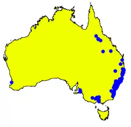 Росте у тропічних лісах Квінсленду з опадами рівня 635—1520 мм.