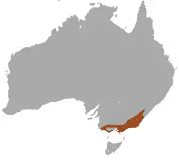 Ендемік Австралії, де він поширений у штаті Вікторія і південному сході Нового Південного Уельсу. Діапазон поширення за висотою: від рівня моря до близько 2000 м. Живе у найрізноманітніших лісових середовищах проживання і пустищах.
