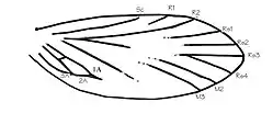 ![]() Схематичне зображення жилкування крила | ||||||||||||||||