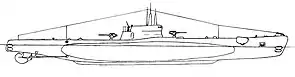 | Швидкість | 17 вузлів (31 км/год) (надводна) 7,7 вузлів (14,3 км/год) (підводна)