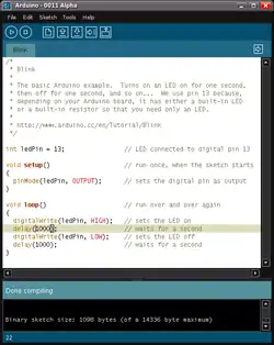 - "Blink Tutorial". Arduino.cc.