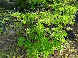 Багаторічний кущ, розгалужений достатньо, до 1,5 метрів заввишки. Листки довжиною від 7 до 22 сантиметрів.