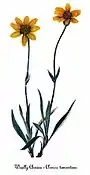 Це багаторічна трав'яниста рослина 5–40 см заввишки з довгим кореневищем. Стебла зазвичай прості, рідко розгалужені, більш-менш густо запушені до 1–2 мм довжиною, білими волосками, змішаними з короткими залозистими волосками і рясними, сидячими, жовтими залозами. Листків 1–5 пар; листові пластини від широко ланцетних до лінійних, 2–20 × 0.3–4 см, краї цілі або нерегулярно зазубрені або зубчасті, вершини гострі або загострені, поверхні від безволосих до густо ворсинчастих. Верхні стеблові листки менше половини від розміру прикореневих. Квіткові кошики жовтого кольору 3.5–5 см шириною; пиляки жовті. Плоди (сім'янкоподібна ципсела) коричневі, 3–8 мм, густо волохаті, рідко залозисті; папуси білі.