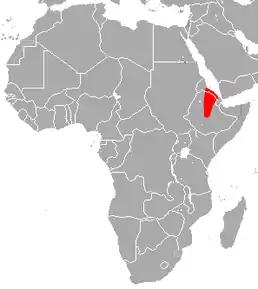 Країни проживання: Еритрея, Ефіопія, Саудівська Аравія. Лаштує сідала в печерах і будівлях на сухих відкритих просторах, таких як напівпустельні луки.