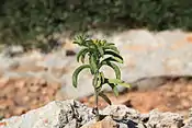 Однорічна густо запушена рослина. Стебла до 50 см, прямовисні, прості або розгалужені у верхній частині, з бічними гілками. Довгасто-ланцетні, довгасті, зворотно яйцюваті листки цілі чи лопатчасті. Має жовті квіти. Цвітіння і плодоношення з квітня по червень.