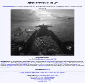 ![]() Вебсайт APOD за 29 березня 2015 із астрономічним знімком того дня — «Тінь марсохода» | |