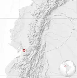 Цей вид відомий тільки у чотирьох населених пунктах на південному заході Еквадору, на висоті 200—460 м над рівнем моря.