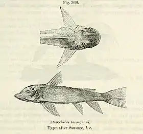 Atopochilus (Атопохілус) — рід риб родини Пір'явусі соми ряду Сомоподібні. Має 7 видів. Наукова назва походить від грецьких слів atopos, тобто «дивний», та cheilos — губа. Є об'єктом акваріумістів.