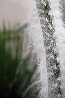 Пагони діаметром 1,5-3 см, з густими, білими волосками, з волосків виступають короткі циліндричні темно-зелені листочки завдовжки 1-3 см.