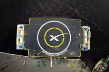 У центрі посадкового майданчика зображена стилізована компанією SpaceX літера «X», що позначає місце «приземлення».