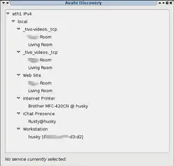 Avahi — вільна реалізація технології Zeroconf, система для Linux та BSD, що проводить аналіз локальної мережі на предмет виявлення різних сервісів. Приміром, ви можете підключити ноутбук до локальної мережі та одразу отримати інформацію про наявні принтери, розподілювані ресурси, служби обміну повідомленнями та інші послуги. Подібна технологія існує в Mac OS X (Rendezvous, Bonjour) і показала себе з найкращого боку. Avahi багато в чому базується на реалізації протоколу mDNS — flexmdns, яка в цей час у занедбаному стані, і всі сили переключено на розробку нового продукту.