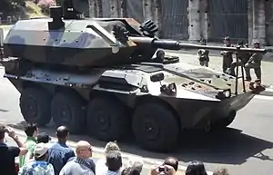 На машині встановлено дистанційно керовану башту з вмонтованою 76-мм швидкострільною морською гарматою. Гармата має автоматичну систему заряджання револьверного типу. Для гармати придатні всі стандартні 76-мм набої, керовані ракети, C-Ram та боєприпаси що вражають броньовані цілі згори. Швидкість вогню складає 80-100 пострілів за хвилину. Боєзапас револьверних контейнерів складає 12 зарядів і дозволяє обирати вид боєприпасу. Додаткових 24 набої зберігаються в автоматичному магазині, що розташований у корпусі.