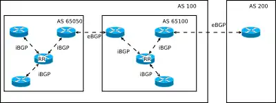 Маршрути, отримані від сусідів з інших автономних систем, тобто по eBGP (Exterior, Зовнішній BGP) для маршрутизаторів Cisco мають адміністративну відстань (administrative distance (AD)) — 20, відповідно від сусідів з тієї ж самої АС тобто по iBGP (Interior, Внутрішній BGP) — 200.