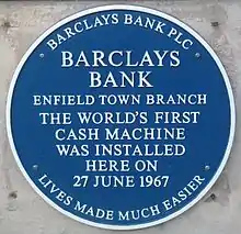 Barclays випустив першу кредитну картку у Великій Британії, Barclaycard, в 1966 році. 27 червня 1967 року Barclays розмістив перший у світі банкомат в Енфілді . [24] [25] Британський актор Рег Варні був першим, хто використовував машину.