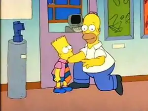Ввечері Барт у скоєному зізнається Гомеру, додаючи, що за цей тиждень вони дуже зблизились, але Гомер розлючується і женеться за Бартом з явним наміром його душити.