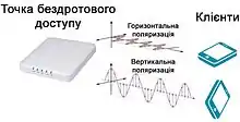 Відомо, що електромагнітне випромінювання антени має властивість поляризації. Для кращої продуктивності, поляризації антен обох сторін бездротового зв'язку (приміром, точки бездротового доступу та клієнта) мають збігатися. Насправді ж, поляризація антен мобільних пристроїв майже ніколи не збігається з поляризацією антен точки бездротового доступу, до якої вони приєдналися[4]: власники мобільних пристроїв (смартфонів, планшетів тощо) зазвичай тримають свої пристрої в різноманітних положеннях і самі зазвичай рухаються, обертаються.