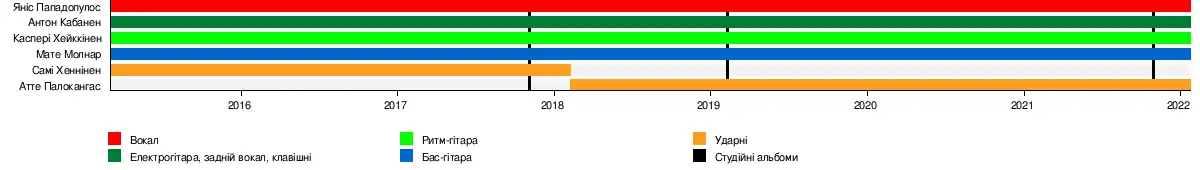 - Атте Палокангас — ударні (2018–дотепер)