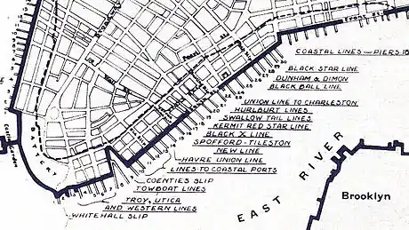 З 1820-х років до 1840-х років включно регулярні трансатлантичні рейси проводилися цілий рік з вулиці Південна в Нью-Йорці до Ліверпуля (Англія) і назад.[1]