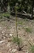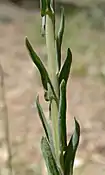 Дворічна або Багаторічна короткоживуча трава. Каудекс присутній або відсутній. Стебло зазвичай одне на каудексову гілку, виникає з центру розетки біля поверхні землі, 2–6.7 дм; щільно опушене проксимально невеликим волоссям 0.1–0.3 мм, голе або слабко опушене дистально. Базальне листя: пластини ланцетні й тонші при основі, шириною 2–5 мм, поля цілі, іноді війчасті біля основи, поверхні рідко-помірно опушені. Стеблового листя 7–40, поверхні дистальних листків голі або рідко опушені.