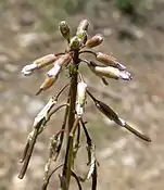 Китиці 10–60-квіткові, як правило, нерозгалужені. Квіти: пелюстки білі, 4–8 × 1–2 мм, голі; пилок еліпсоїдний або сфероїдний. Плодоніжки 5–10 мм, голі або рідко опушені. Плоди 0.35–0.65 см × (2)2.2–2.5 мм; клапани голі. Насіння від однорядкового до субдворядкового, 1.4–1.7 × 1–1.2 мм; крило безперервне, шириною до 0.2 мм.