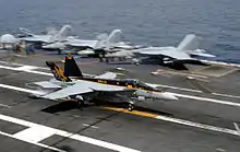 ![]() Посадка F/А-18E на борт авіаносця (CVN-71) «Теодор Рузвельт» | |
