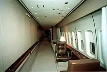 Головна пасажирська зона міститься на другому поверсі або на головній палубі. На борту є три входи: два на нижній і один ― на верхній палубі. Зазвичай президент заходить/виходить з переднього входу головної палуби по бортовому трапу, проте журналісти та інші пасажири користуються заднім входом головної палуби. Зручності для преси та інших пасажирів представлені у вигляді кабіни першого клас типового авіалайнера .[3]