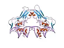 Brachyury збирається у димери, які охоплюють ділянку ДНК Т-боксу, та діють як транскрипційні фактори.