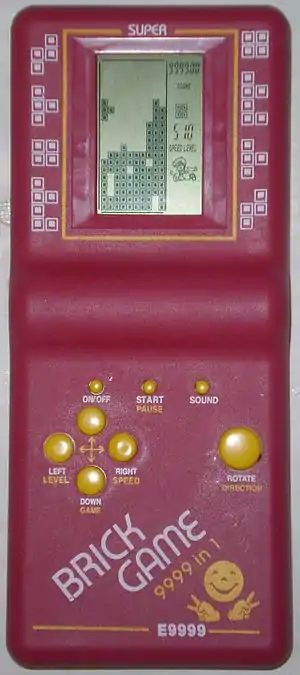Brick Game, також відома як Тетріс — портативна гральна консоль із роздільністю дисплея 200 пікселів зі встановленим набором ігор без можливості встановлення інших. Розроблена в середині 1980-х років у Китаї як комплексний прототип грі Тетріс, розробленій радянським, а згодом американським програмістом Олексієм Пажитновим.