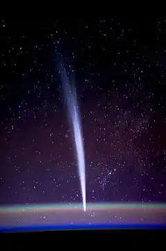 ![]() Комета Лавджой сфотографована Деном Бербанком на борту МКС, 21 грудня 2011 |