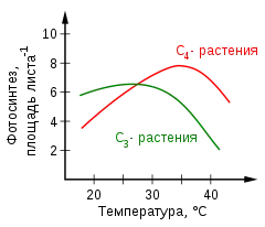 Для більшості C3-рослин помірної кліматичної зони температурний оптимум фотосинтезу припадає на 25—30 °C. У рослин із C4- і CAM-метаболізмом температурний оптимум припадає на 30—35 °C[60].