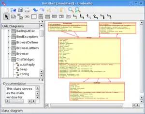 - Umbrello — середовище UML-моделювання. Цей застосунок є вільним програмним забезпеченням, призначеним для побудови UML діаграм на платформі Unix