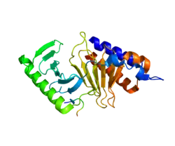 Кодований геном білок за функціями належить до гідролаз, протеїн-фосфатаз, фосфопротеїнів. Задіяний у таких біологічних процесах як взаємодія хазяїн-вірус, клітинний цикл, поділ клітини, мітоз, поліморфізм, ацетилювання, альтернативний сплайсинг. Локалізований у ядрі.