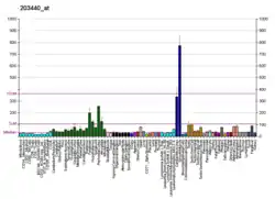 Кодований геном білок за функцією належить до фосфопротеїнів. Задіяний у таких біологічних процесах, як клітинна адгезія, альтернативний сплайсинг. Білок має сайт для зв'язування з іонами металів, іоном кальцію. Локалізований у клітинній мембрані, мембрані, клітинних контактах.