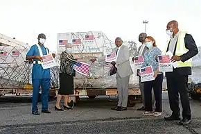 у рамках своєї ізоляціоністської політики America First[28] адміністрація Трампа заявила 1 вересня 2020 року, що не буде приєднуватися до COVAX через свою асоціацію з ВООЗ,[29][30] з якої 6 липня 2020 року вона розпочала річний процес виходу.[31]