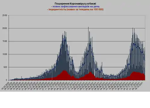 26 вересня в Києві зафіксовано антирекорд, за добу виявлено 447 хворих, з початку пандемії зафіксовано 21 492 хворих[44].