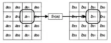 - Заміна байт — BS (Byte Substitution): застосування перестановки або