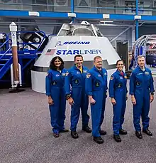 3 серпня 2018 НАСА оголосила прізвища астронавтів для перших місій корабля Starliner.[51][52] Еріка Боу через стан здоров'я було замінено у січні 2019 на Едварда Фінка.[53]