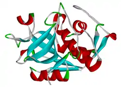CTSK (англ. Cathepsin K) – білок, який кодується однойменним геном, розташованим у людей на короткому плечі 1-ї хромосоми. [5] Довжина поліпептидного ланцюга білка становить 329 амінокислот, а молекулярна маса — 36 966[6].