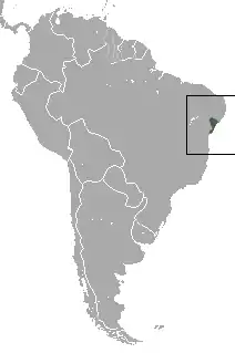 Вид є ендеміком Бразилії, де зустрічається лише на сході країни у штатах Баїя і Сержипі. Ареал виду знаходиться у басейні річок Сан-Франсиску та Ітапікуру. Розрахункова чисельність виду становить близько 500—1000 особин.