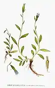 Рослини висотою 5–30 см, з подовженими кореневищами. Стебла поодинокі або декілька разом, голі, від сланких до зведених. Листки: в основному стеблові, темно-зелені, дещо шкірясті завдовжки 0.5–4 см і шириною 0.1–0.5 см; від еліптичних і черешкових нижче до сидячих і оберненоланцетних вище. Квіти завжди поодинокі. Чашечки (об'єднані чашолистки) запушені. Віночок блідо-блакитний, 4–8 мм в діаметрі й 4–10 мм довжиною. Пиляки (чоловічі частини) 1–2 мм завдовжки. Плід — чорна капсула (бліда); 5–20 мм довжиною; шириною 4–7 мм; волохата (негусто волосиста). Насіння 100 (численне); 0.9–1.2 мм довжини; коричневе; поверхня гладка.
