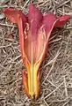 Суцвіття верхівкове. Квіти великі, трубчасто-лійкоподібні, до 5 см у діаметрі і до 9 см завдовжки, з яскравим жовтогарячим або червоним віночком, зібрані у китиці по 10-15 квіток.