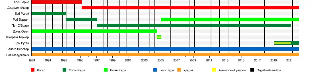 - Кріс Барнс — вокал (1988—1995)