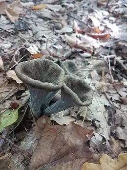 Craterellus cinereus [2] Pseudocraterellus cinereus [3] Cantharellus hydrolyps [4] | ||||||||||||||||||