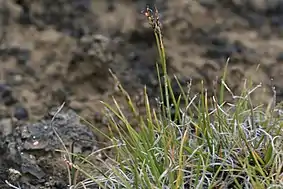 Carex glacialis — багаторічна рослина родини осокових. Непоказна трава з лінійними листками. Етимологія: лат. glacialis — «заморожений, льодовий»[1].
