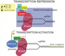 Поєднавши інактивовану молекулу dCas9, яка зв'язує ДНК але не розрізає її, з нуклеазами FokI, вдається отримати нуклеази і рестриктази для високоспецефічного розрізання ДНК[14][15][16]. Розроблено також спосіб виборчого епігенетичного перепрограмування активності генів за допомогою інактивованої молекули dCas9, з'єднаної з ферментом, що здійснює деметилювання ДНК[17]. Причому таке перепрограмування епігеному можна проводити навіть in vivo[18]. Пізніше з'ясувалося, що якщо вкоротити керуючу РНК до 14-15 нуклеотидів, то молекула Cas9 втрачає здатність розрізати ДНК[19][20]. Використовуючи цю властивість вдалося створити систему для виборчої активації певних генів in vivo і перевірити її ефективність шляхом лікування мишей зі змодельованими захворюваннями. У цього методу є тільки одна проблема: зазвичай система CRISPR завантажується в нешкідливий вірус, який називають аденоасоціованим вірусом (AAV), який переносить систему в клітину. Але весь білок, що складається з dCas9 і керуючої РНК, занадто великий, щоб поміститися в один AAV. Щоб вирішити цю проблему, дослідники завантажили dCas9 в один вірус, а керуючу РНК — в інший.
