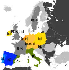 У французькому і португальською мовами цей диграф читається як [ʃ].